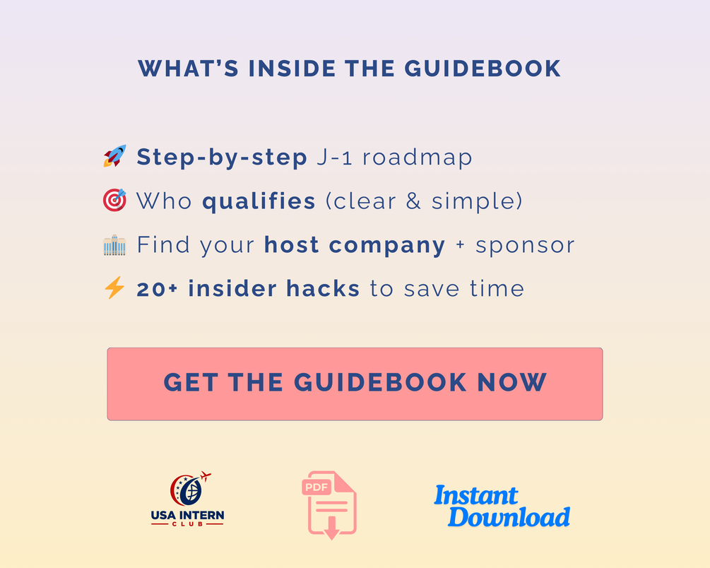 Most students dream of interning in the U.S. - but waste months feeling lost in the J-1 visa process. That’s exactly why this guide was created: to give you clarity, confidence, and a proven roadmap to follow. Inside, you’ll discover who qualifies, how to find your host company, and how to prepare for your visa interview — all explained step-by-step in a 19-page action guide packed with 20+ insider hacks.