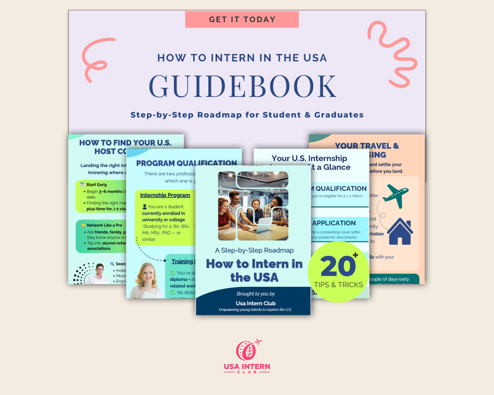 Remember: This guide is for general education for anyone on the globe. If you’re from Europe and want full support with placement + visa prep, you may qualify for USA Intern Club’s full program (details inside the PDF).
